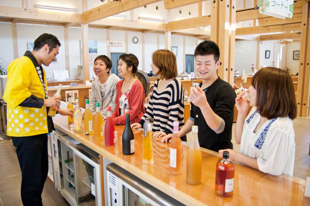 木の香り漂う風流な建物が好評の直売店では、梅干の試食、梅酒の試飲ができます。これぞ、大人だからこそ楽しめる社会科見学!ずらりと並べられた梅干や梅酒、味の違いを比べてみて。
