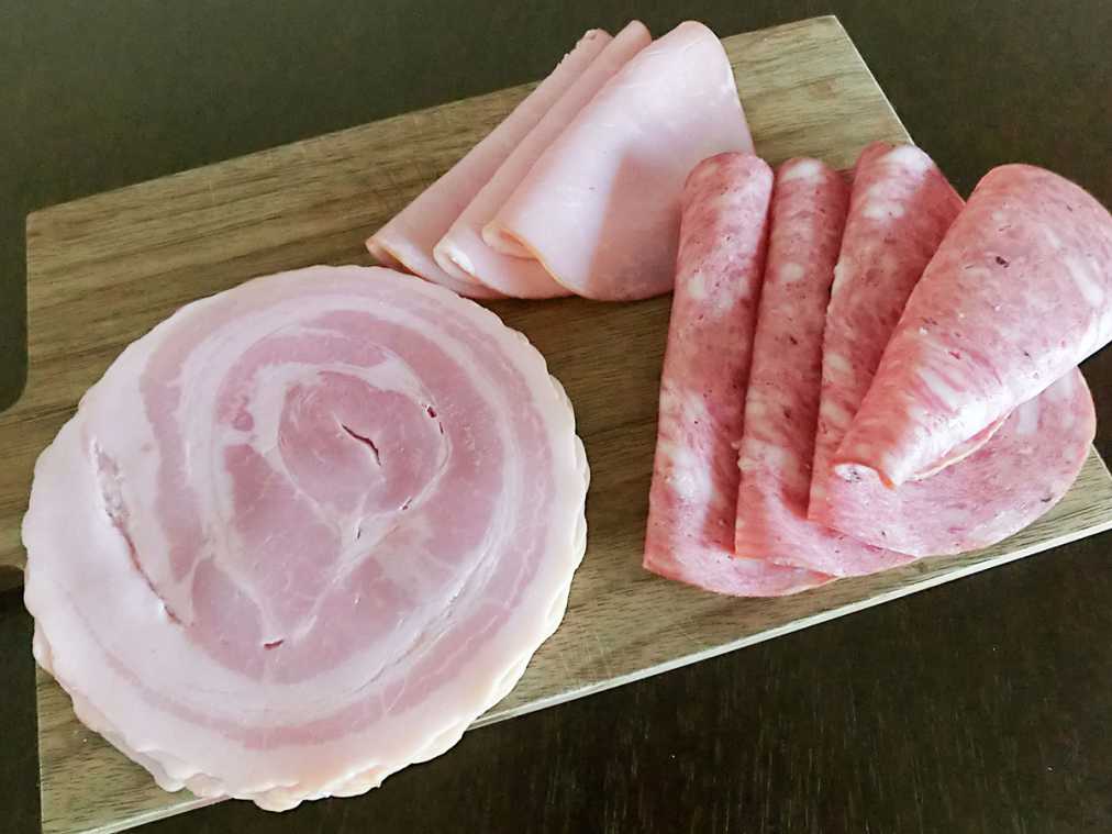 ほかにもコンビーフ以外の加工品も、本店ならハムやソーセージを50gから量り売りで少量ずつ買うことができます。
