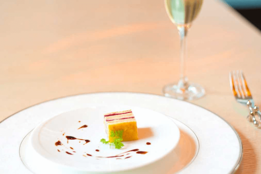 今回ご紹介するのは、魚料理と肉料理のWメインディッシュをいただける「ハーモニー プリフィクスディナーコース(11000円)」。前菜からデザートまでの4皿は、ぞれぞれ3~4種類用意されていて、好みのものを選ぶことができます。
