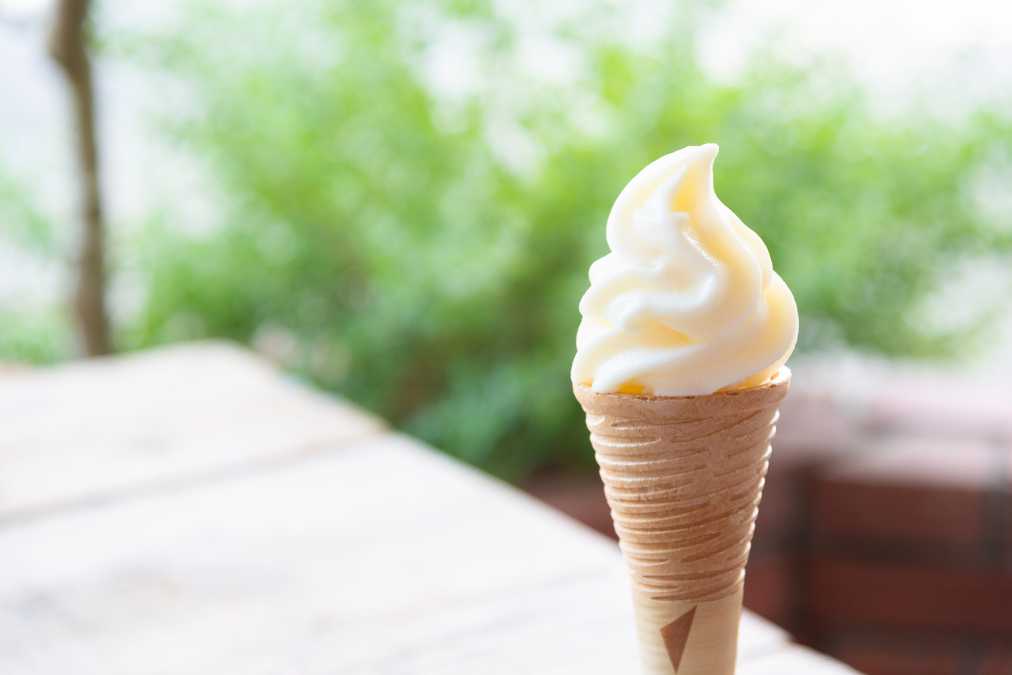 弓削牧場(北区)のソフトクリーム400円(カップは300円)もおすすめ。甘さ控えめで、放牧牛の低殺菌牛乳をたっぷり使うため、濃厚なミルクの味が楽しめます。