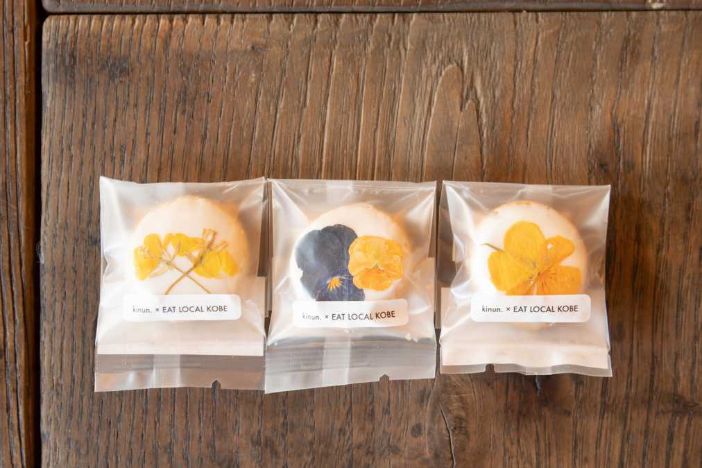 こちらは、お花のアイシングクッキー各220円。北区ふぁーむ&がーでんヒフミさんのエディブルフラワーと、西区ナチュラリズムファームさんの米粉を使用しています。食べるのがもったいないほど、愛らしいビジュアルです。