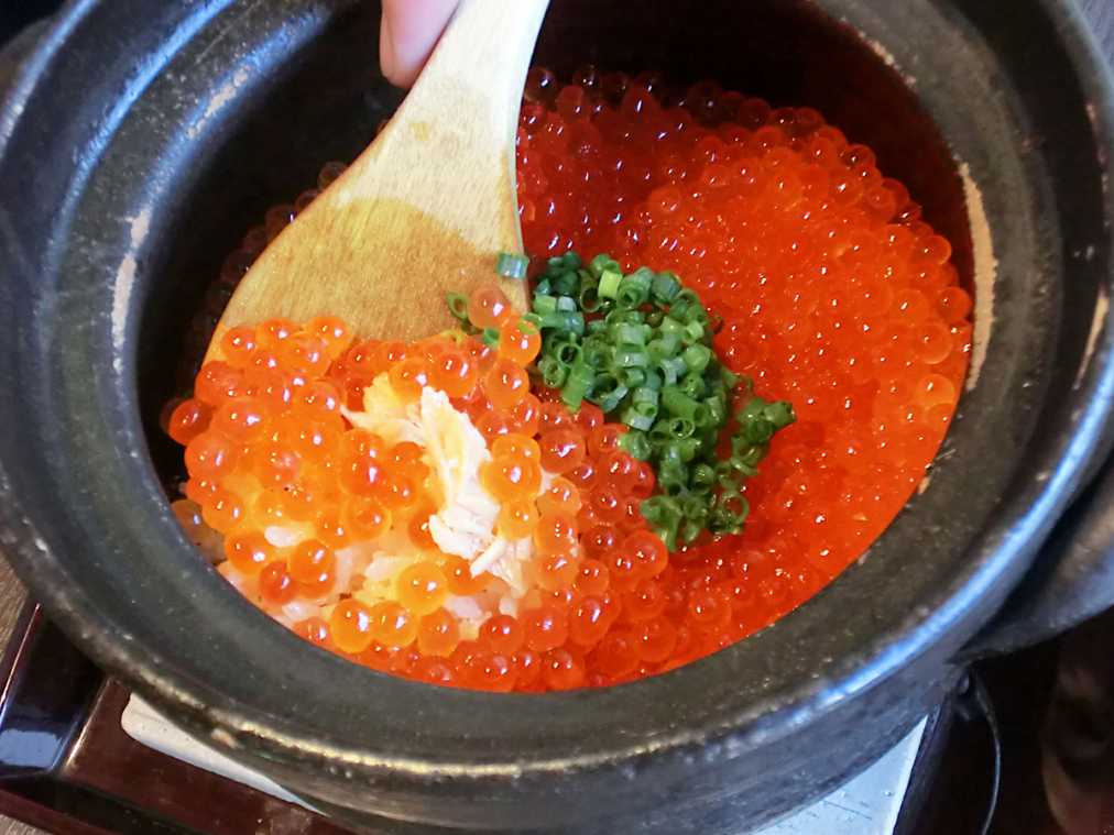 あふれるイクラが贅沢すぎる!土鍋で炊いた最高のシメごはん