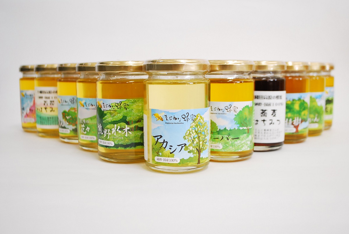 「まじめな蜂蜜」は、国内流通の6%しかない貴重な純国産のはちみつ。種類もたくさんあるのでお気に入りのはちみつを見つけてみては。
