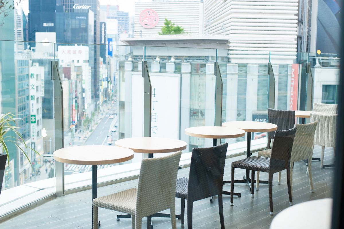 こちらは、ラグジュアリーなブランドが軒を連ねる銀座の街並みを一望できるテラス席。屋外でも過ごしやすい秋に、ぜひ利用したいスペースです。
