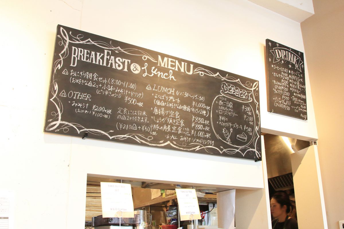 「オニギリー」は、おにぎりや惣菜などのデリバリーからスタートした会社で、2014年にこのカフェがオープンしたそう。もちろん今でも電話によるデリバリー予約を受け付けているほか、店頭では全品テイクアウトが可能!おにぎり2つと惣菜3種のお得な「テイクアウト限定セット」(648円)なども販売されています。