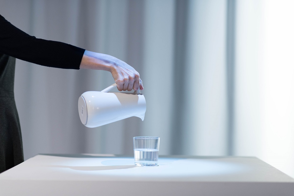 実際に水は入っていないのに、入っているように錯覚してしまう水差しです。振動、音と光の表現により、水が入っているかのように感じてしまう、不思議な感覚が体験できますよ。