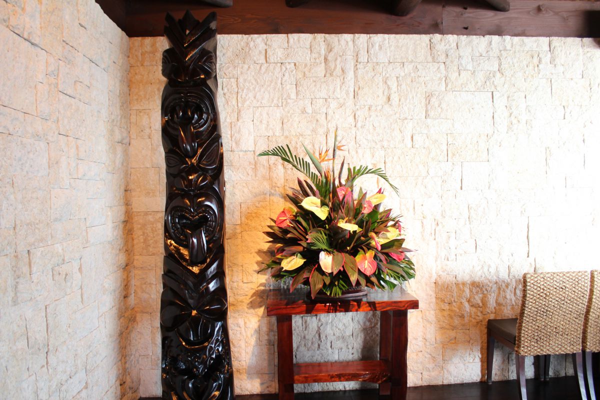 「モアナマカイ珊瑚礁」の魅力の一つは、クラシックなハワイアンを基調とした雰囲気。開放感バツグンで、ただそこに座っているだけでもリフレッシュできます。