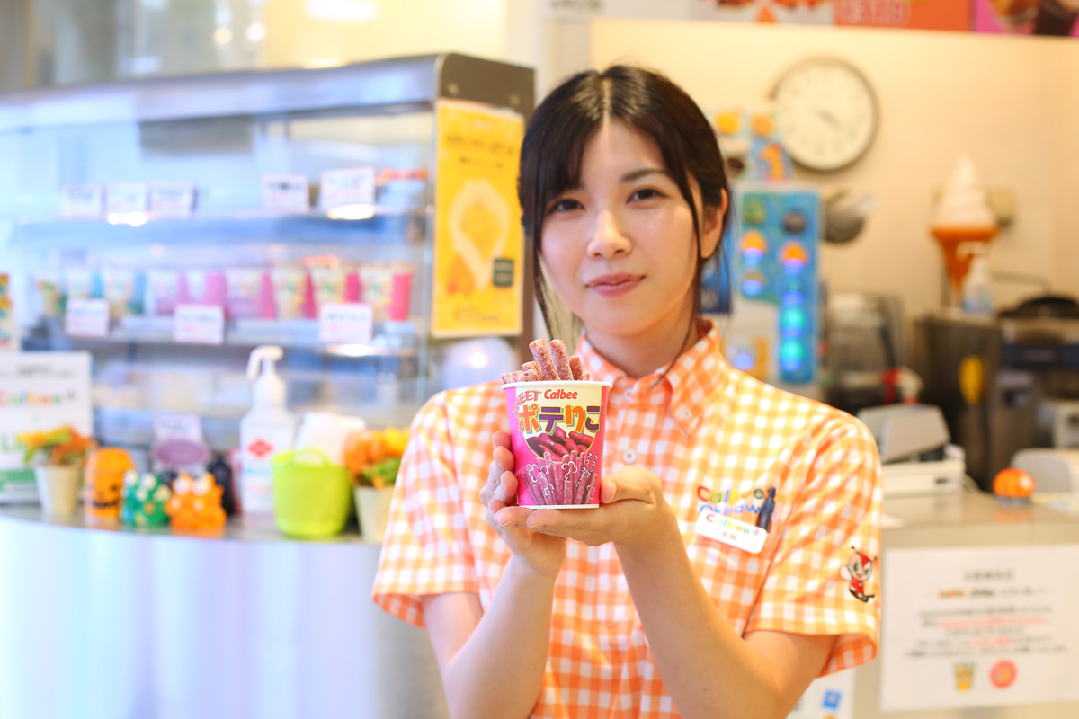 注目したいのは、出来たてのフードメニュー。じゃがりこからうまれた「ポテりこ」(310円)、じゃがいもを使ったチュロス「ポテチュロ」(230円)などのスナックが店内で揚げられていて、注文すると熱々で提供してくれます。