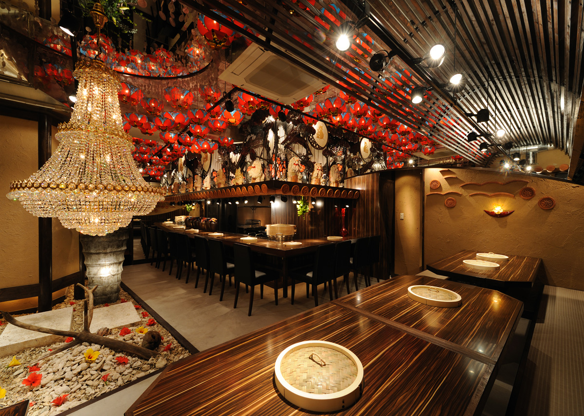 店内は花笠や巨大シャンデリアが飾られ、華やかな雰囲気。有名人のサインもいっぱいです。南国リゾート感たっぷりで気分も盛り上がり、沖縄の夜を楽しく過ごせます。4~6名用の半個室も設けられているのでデートにもぴったり。