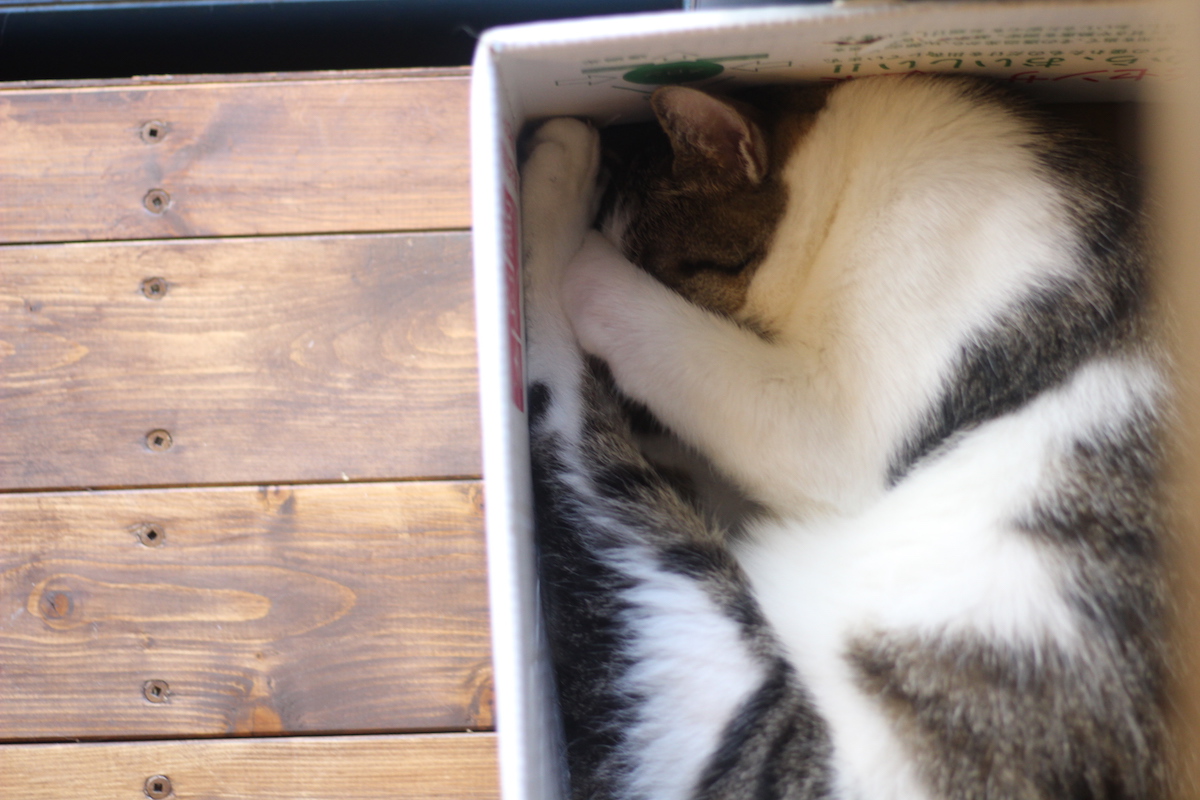 猫たちはみんなとっても人慣れしていて、お客さんがやってきても驚くことはほとんどありません。お気に入りの段ボールにぴったりと収まっていたり、ソファの上でゆっくり過ごしていたり。くつろぐ様子を見ているだけで、和やかムードへ誘われます。