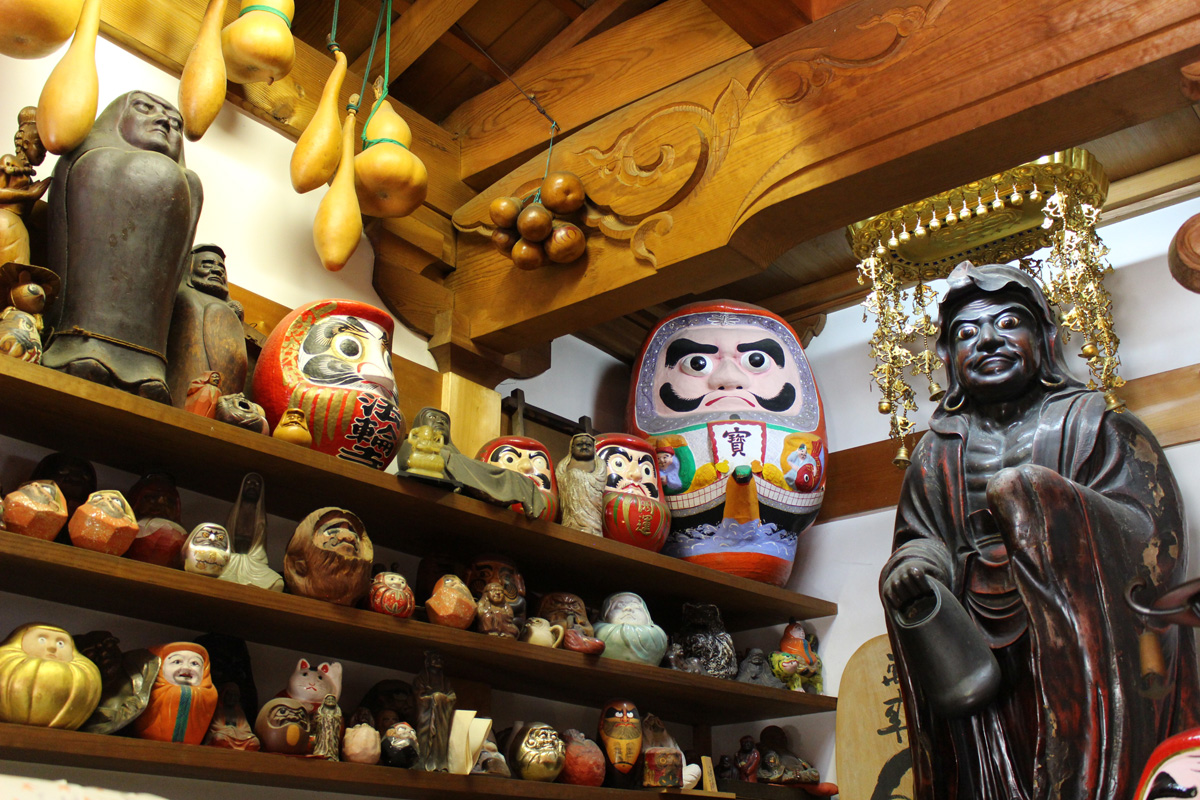 中に入ってみると、大小さまざまなダルマさんでいっぱい!見慣れた表情のダルマもあれば、かわいらしいもの、いかめしいもの、ちょっとぎょっとするような表情のもの…。ところせましとダルマさんが並んだ姿は、なんだかユニークです。