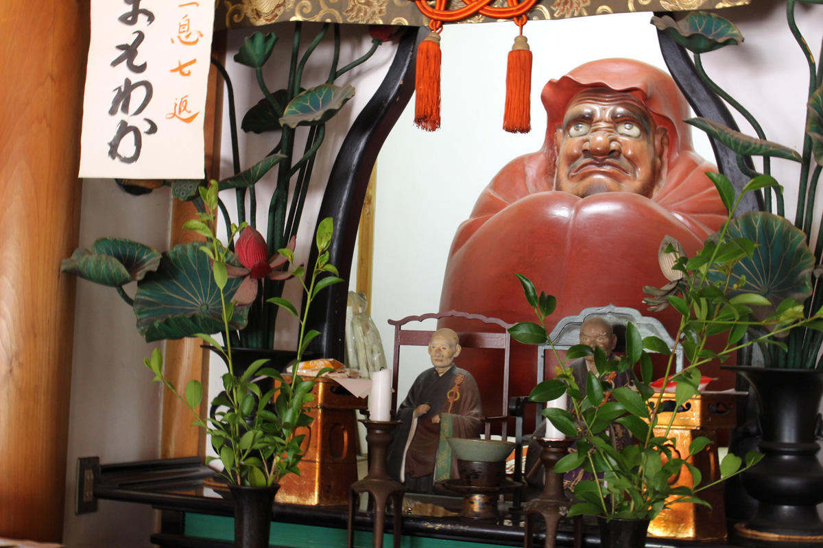 だるま寺には諸願成就や厄除開運を願って全国各地から奉納されたダルマさんたちが、お寺のいたるところに置かれています。このお堂は、戦後に建てられた「起き上がり達磨堂」です。