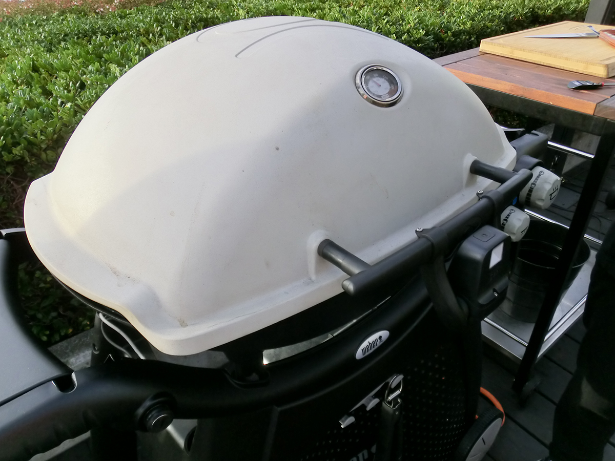 WeberのBBQグリルの使い方はとってもシンプル。塩、こしょう、オリーブオイルをまぶした食材をグリルにのせて、ふたをしたらタイマーをセットするだけ。焼き上がりは温度計を使って確認します。食材は小さく切らず、大きな塊のまま焼くのがジューシーに仕上げるコツ。
