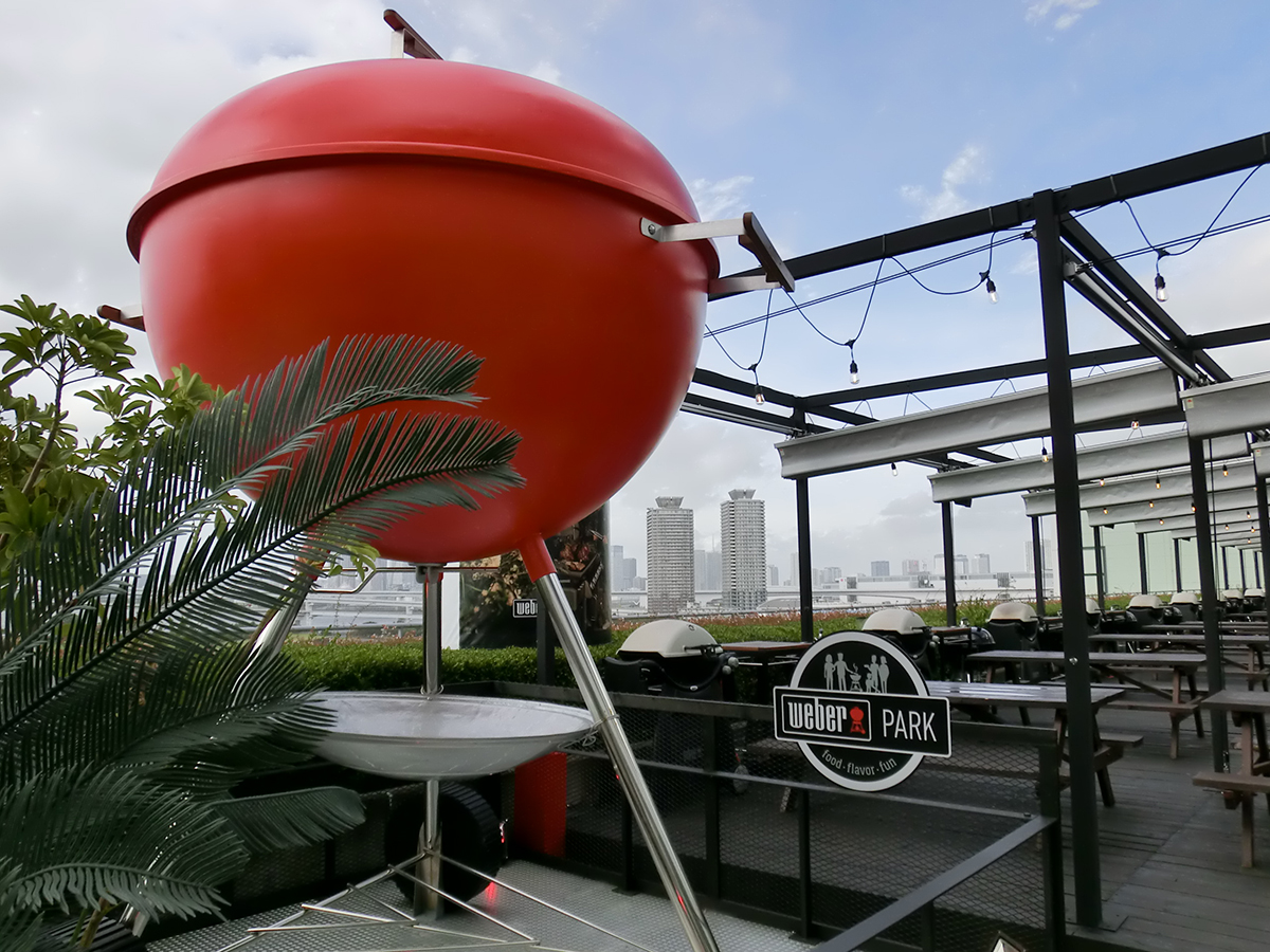 2018年6月にオープンした「Weber Park」はアクアシティお台場の屋上にあります。入り口すぐの場所の真っ赤なBBQグリルの巨大オブジェが目印です。