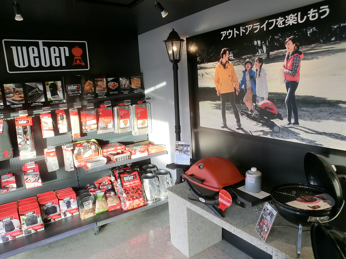 同じフロアにはWeberの公式ショップが併設され、トングや軍手、洗浄用ブラシなどのグッズから、家庭用のコンパクトなBBQグリルやプロが使う業務用のBBQグリルまであり購入することができます。