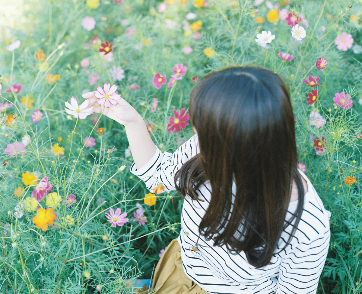 コスモスが咲く隙間に入ってみました。モフモフしたコスモスに包まれるのは気持ちいいです。ただし、花は生き物なのでくれぐれも傷めないように気をつけたいものです。入ったらダメと書かれているところは入らないようにしましょう。