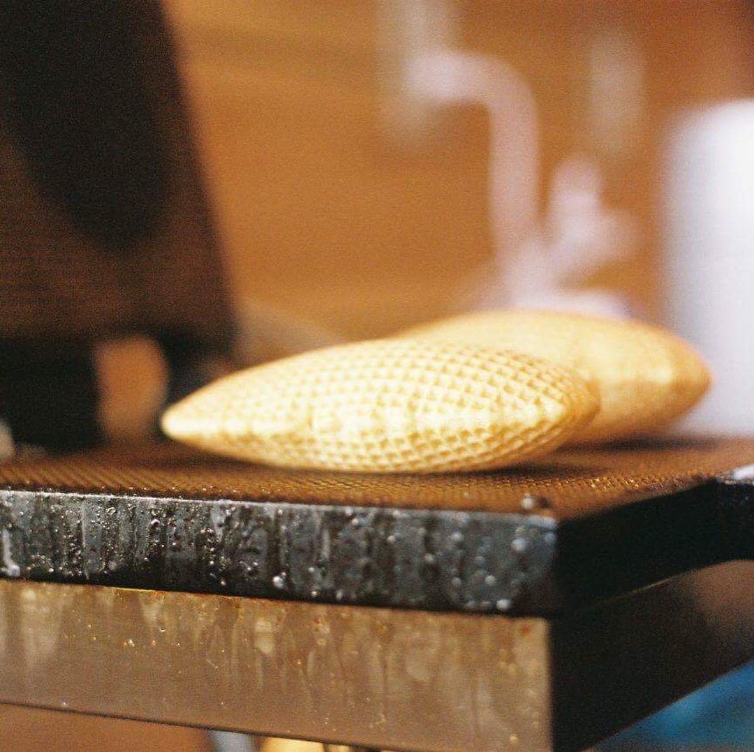 中身は、ゴーフレットというやわらかいワッフル生地の間に、無脂肪乳から作られたミルク感たっぷりのジャムが塗られたお菓子です。味はやさしい甘さで「ふわっ・シャリッ・とろっ」という3つの食感が味わえるお菓子。