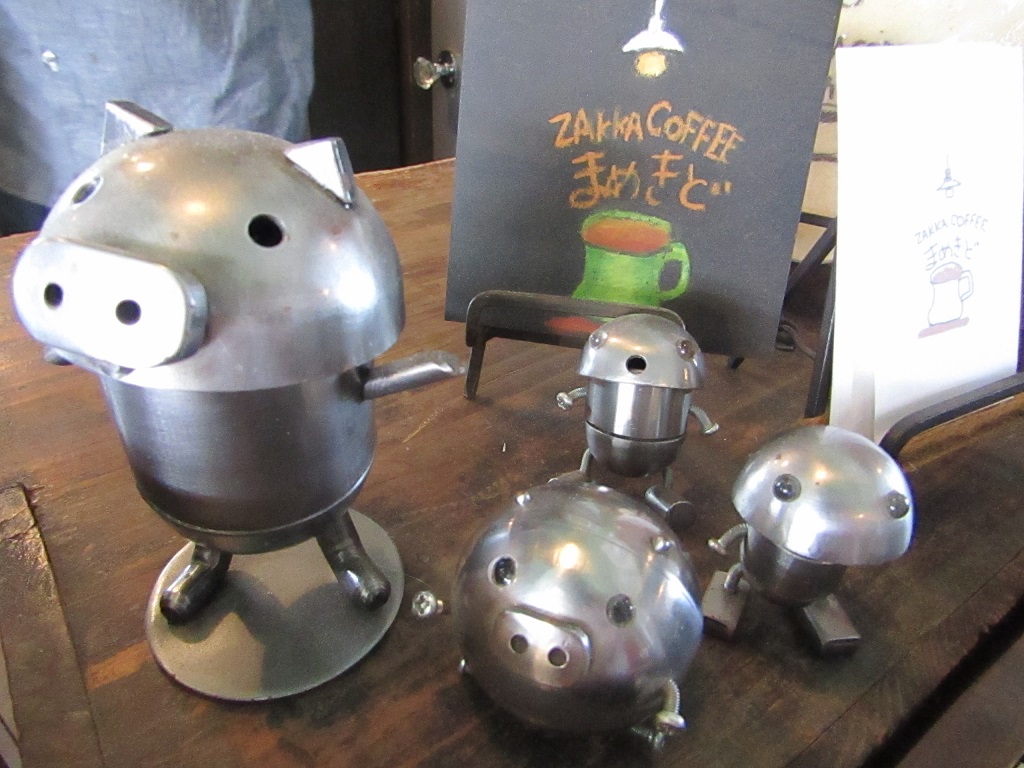 ネジやボルトで作られているかわいいマスコットたちは、お店のシンボルになっています。