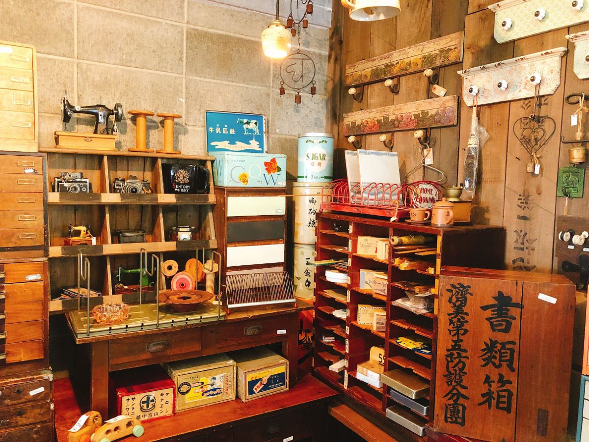 レトロな雑貨や小物などもオーナーが各地から集めてきたものがずらりと並んでいて、掘り出し物がみつかるかもしれません。雑貨や小物のディスプレイなども、インテリアの参考にしてみて。