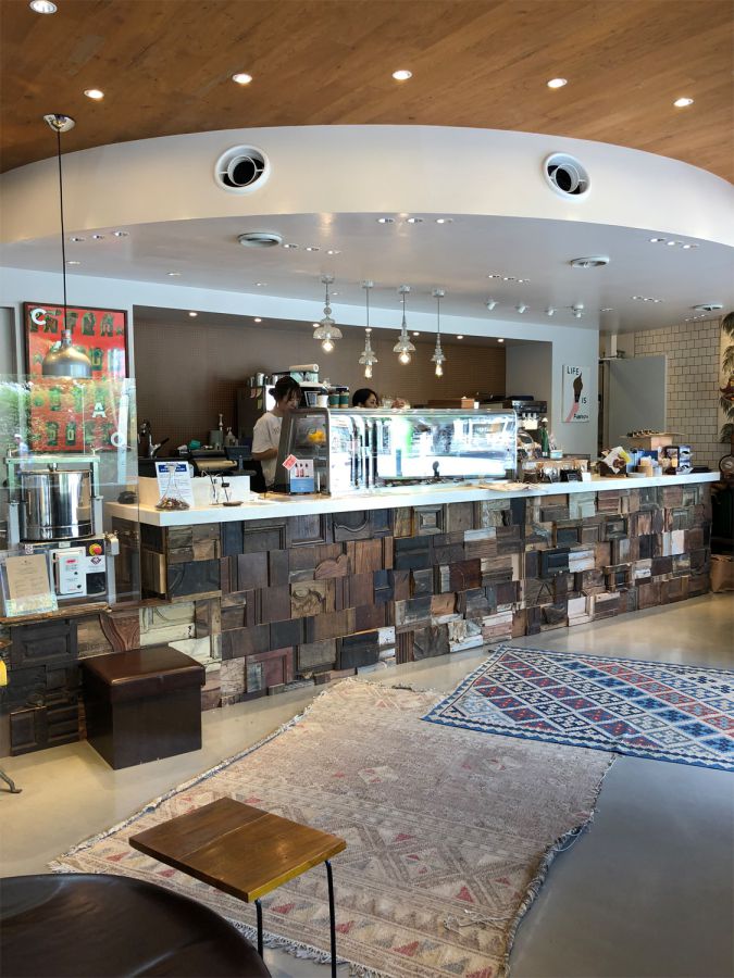 大きな通りに面したガラス張りのお店は、フラッと立ち寄りやすいオープンな雰囲気。実際に女性1人のお客さんも多いそうです。無国籍テイストのインテリアはスイーツ同様インスタ映え抜群!カウンターで代官山の落ち着いた街並を眺めつつ、仕事や買い物帰りにほっと一息つくのもよさそうです。