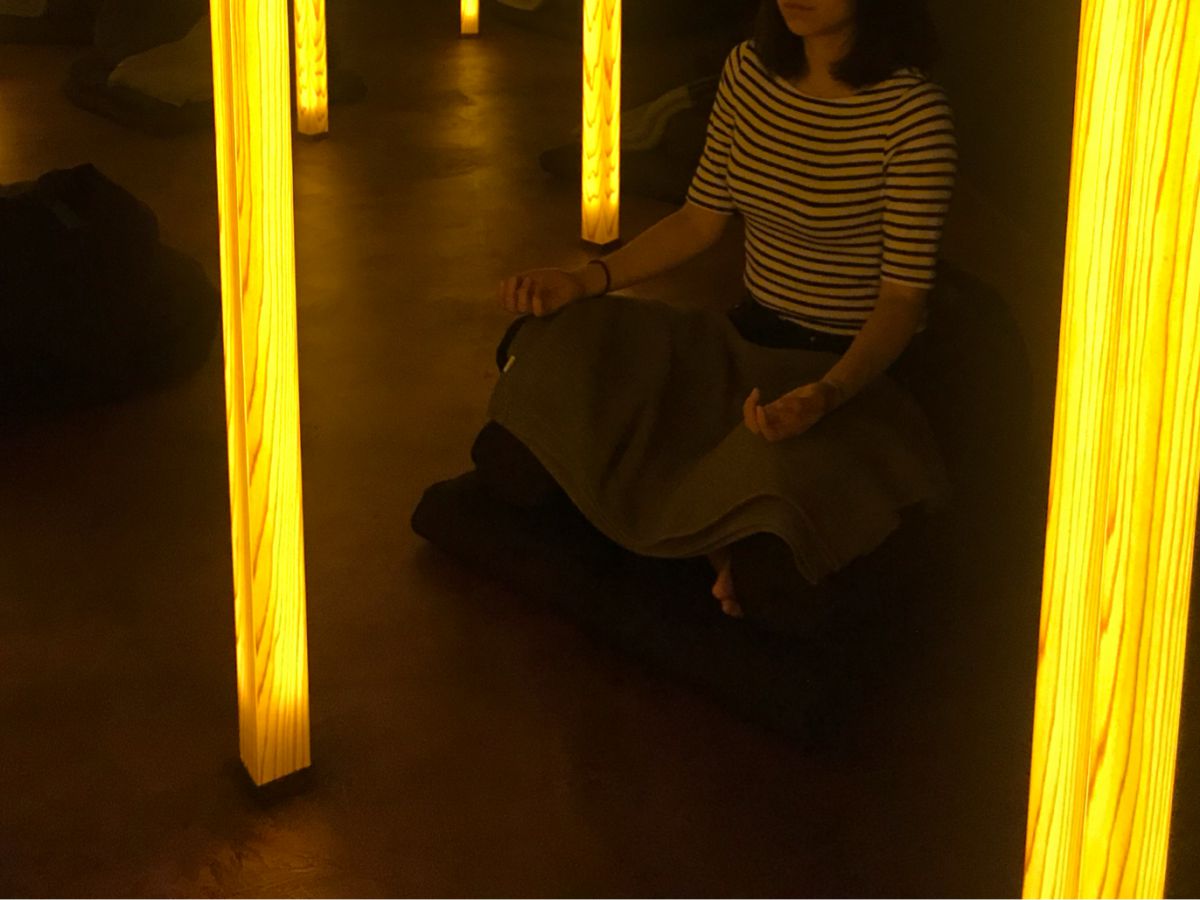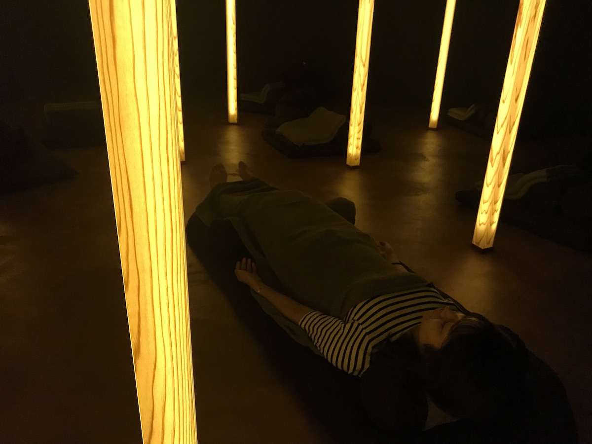 これは、完璧に寝てしまうパターン…でも心配ご無用!瞑想中に寝てしまうのは、リラックス効果が高まった証拠なので、問題ないとのことでした。このセッションには、仕事の隙間にリフレッシュを求め訪れる人も多いそうですよ。