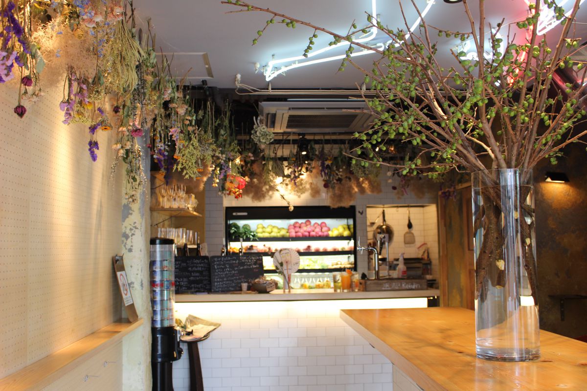 お店は、道沿いに大きなガラス扉が開け放たれています。店内にはグリーンやプリザーブドフラワーが飾られていて、おしゃれなカフェのようで、入りやすい雰囲気も魅力です。