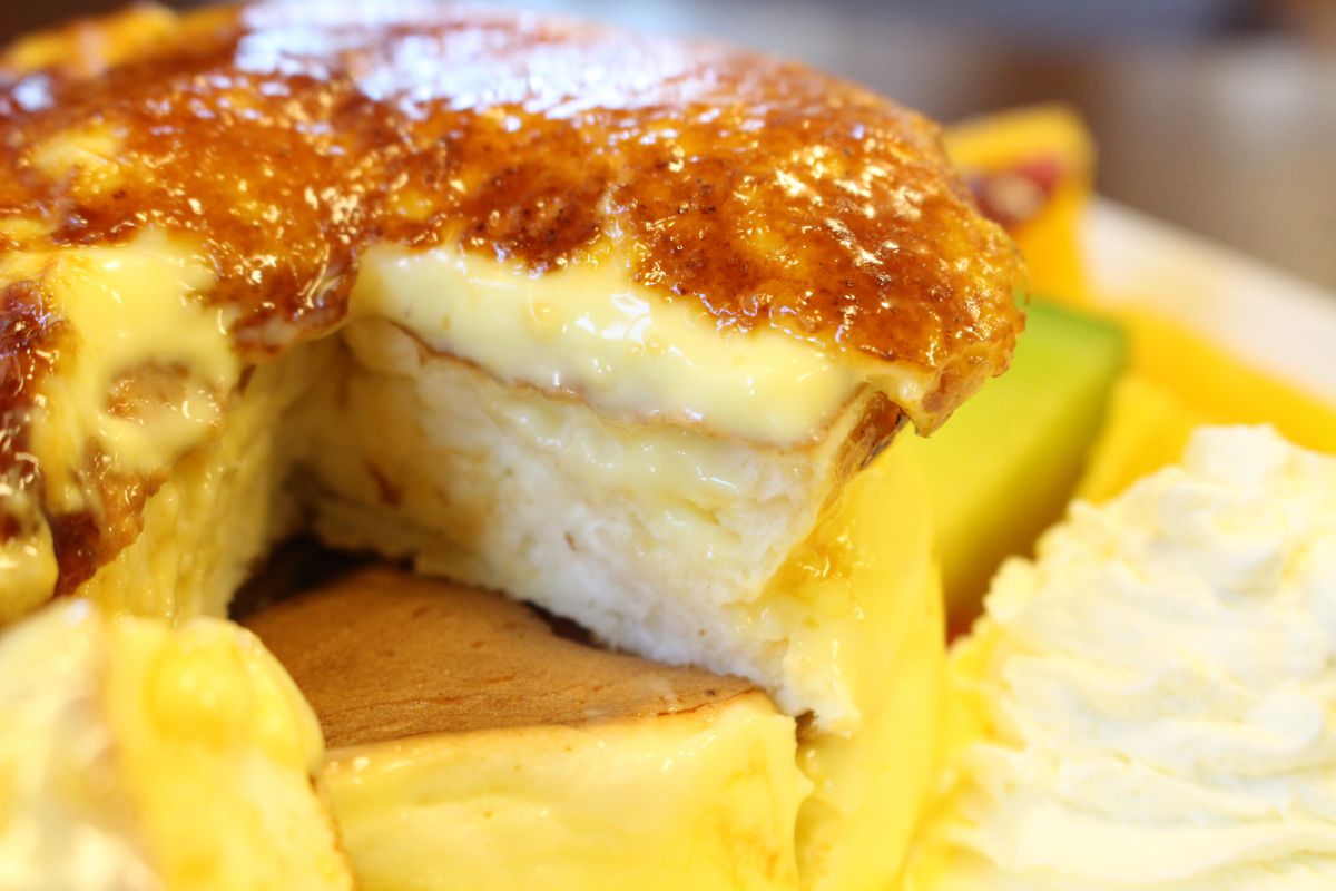 とろ~りカスタードがかかったスフレパンケーキ