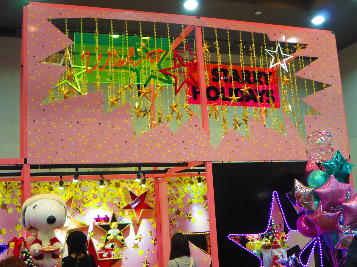 まずドドーンっと目に飛び込んできたのは、星が降りそそぐこちら。2018年クリスマスアイテムがずらっと並んだコーナーです。
