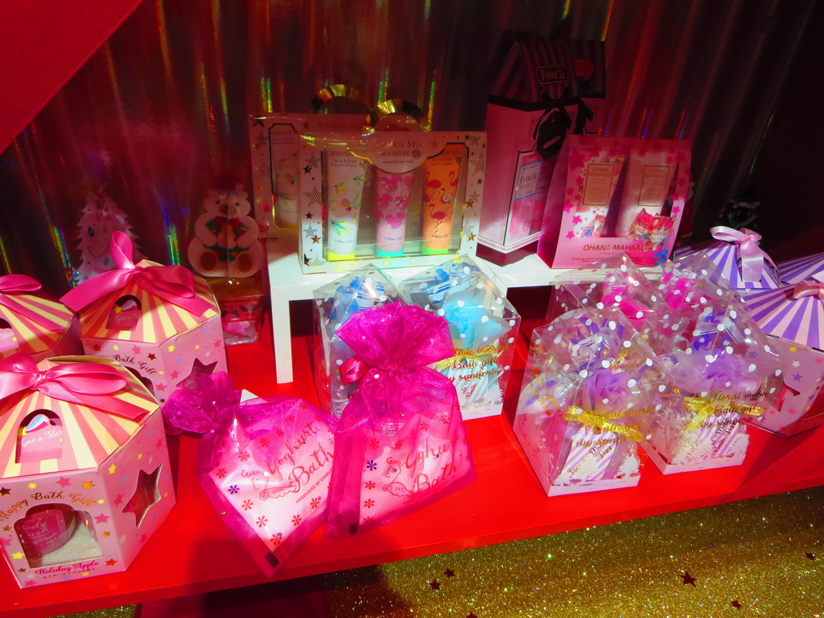 寒い冬でもきらっきらに輝くグリッターアイテムや、もらってうれしいハンドクリームなどの美容系ギフトもありました。ついつい自分用に買ってしまいたくなるかわいさです!