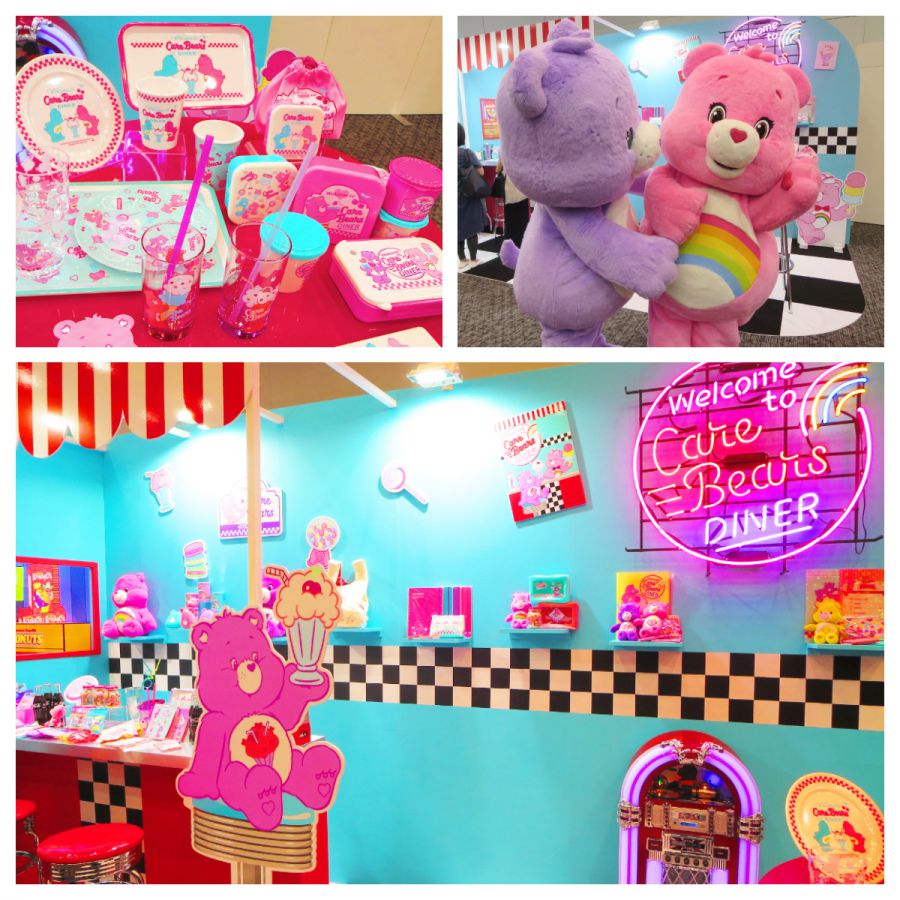 会場ではケアベア™に会うこともできました!チアベア™(ピンク)とスウィートドリームベア™(紫) は、写真右上のようにチューしてしまうくらいの仲の良さ!終始じゃれあう姿に、思わずメロメロになってしまいました…。