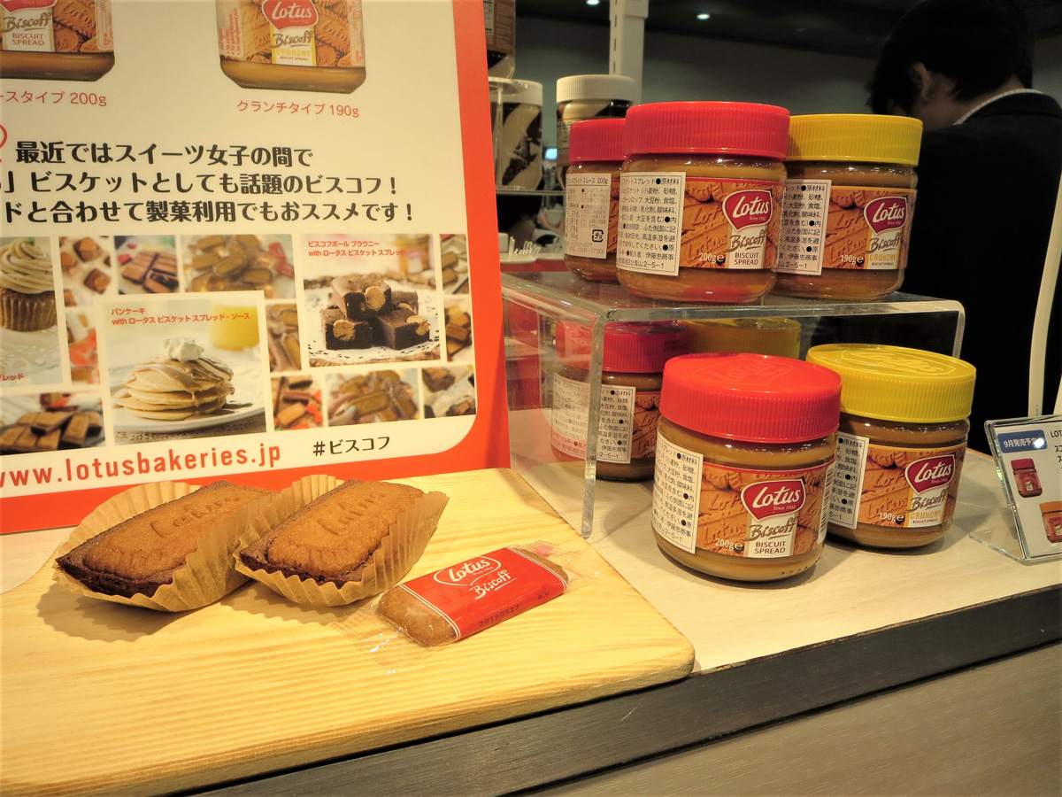 編集部大盛り上がりだったのは、「ロータスビスコフ」コーナー。なんとあの「オリジナルカラメルビスケット」をペースト状にしたという「スプレッド」が新発売!(写真右側)