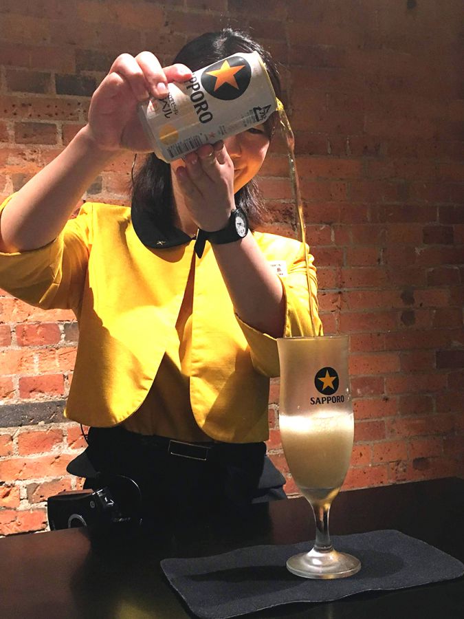 最後に、缶ビールがおいしくなる注ぎ方レクチャー。実際に家でトライすると、まるでお店のようにおいしくなりました。すっかりビール通の気分です。