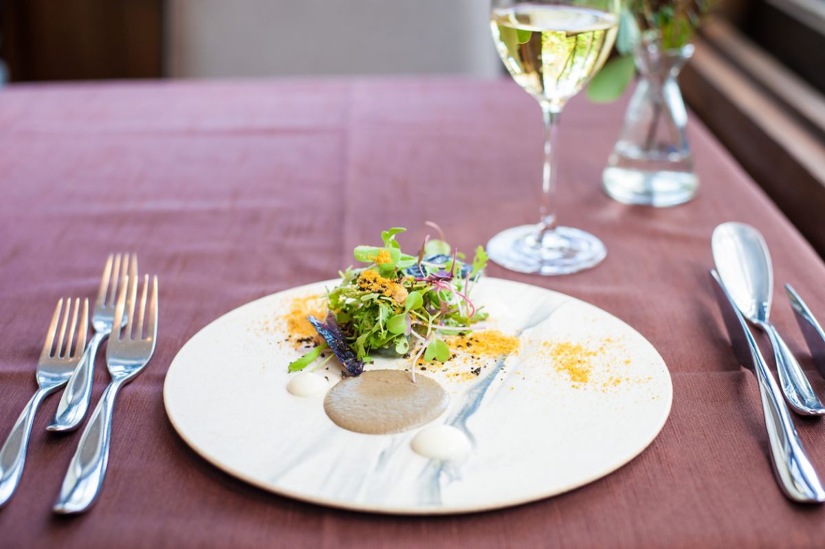 また、お皿の縁を飾る黄色い植物は、「古我邸」の庭でとれたオクラの花なのだそう。こうしたあまり見かけない、ユニークな食材を楽しめる点も「古我邸」の魅力です。