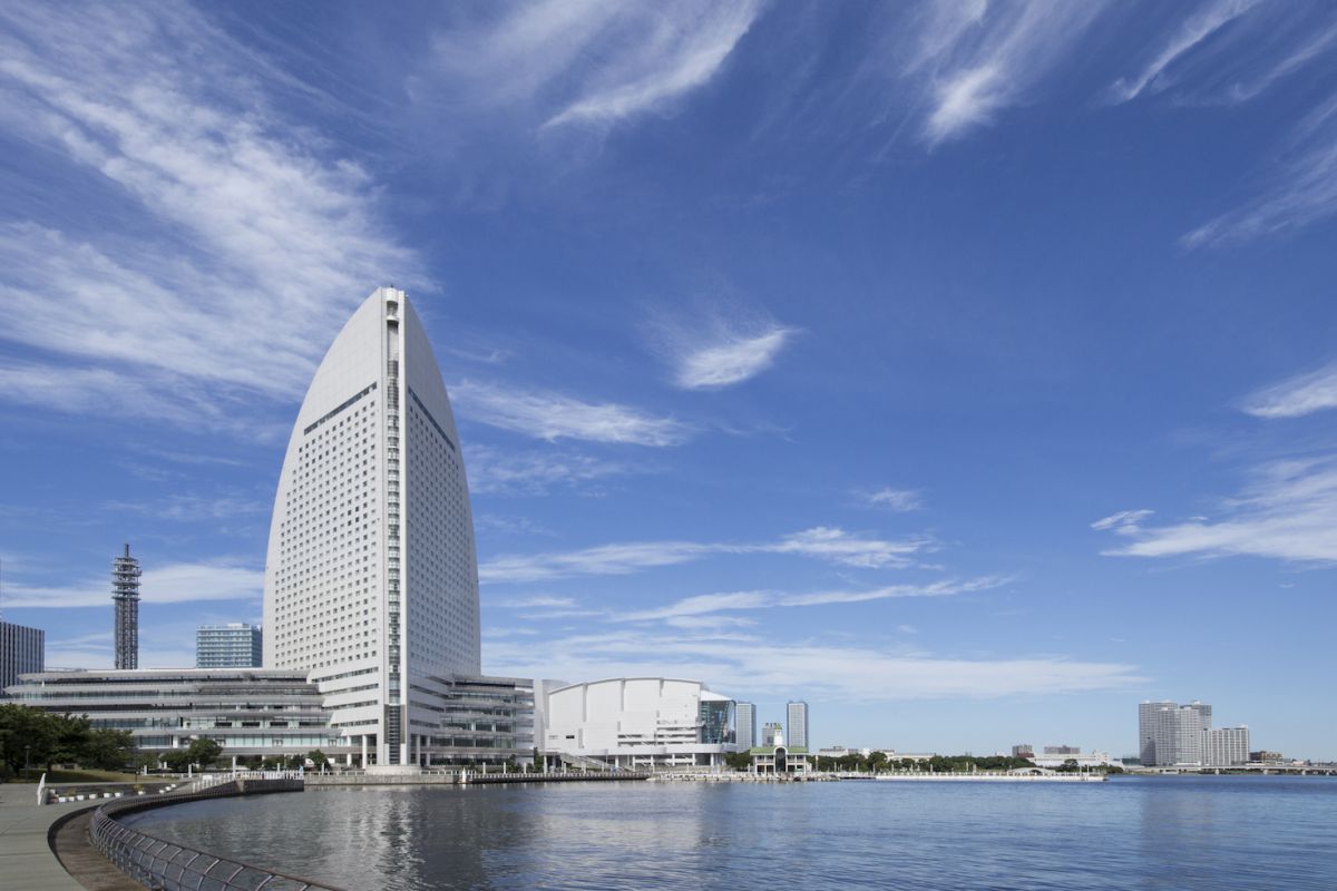ヨットの白い帆をイメージした外観が特徴の「ヨコハマ グランド インターコンチネンタル ホテル」。横浜ベイブリッジを望むダイナミックな眺望が魅力で、夜はみなとみらい21の大観覧車を間近に眺めることもできます。