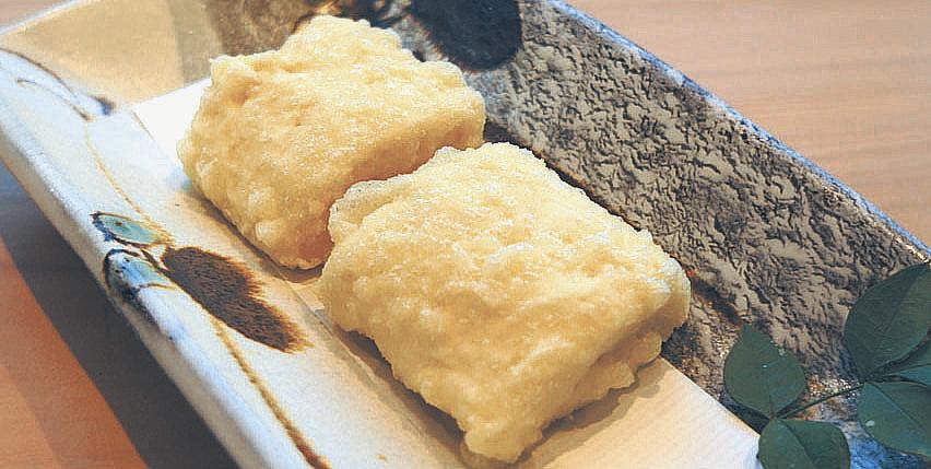 こちらはゆばの天ぷら600円。とろりとした湯波をサックリと揚げてあり、食感がたまりません。