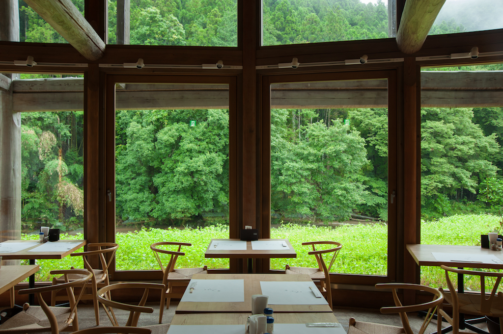 ログハウスになったのは、小来川にログハウスの神様と呼ばれたアラン・マッキー氏がログビルダー育成のために開校した伝説のログビルディングスクールがあった場所だったから。そこで講師をしていたログビルダーたちが力を合わせて、お店の建物のデザインを練ったそうです。コンセプトは、「“凛”をテーマにした、どこにもないログハウス」。自然と調和しながらも、和の趣をミックスさせたスタイリッシュさが際立ちます。