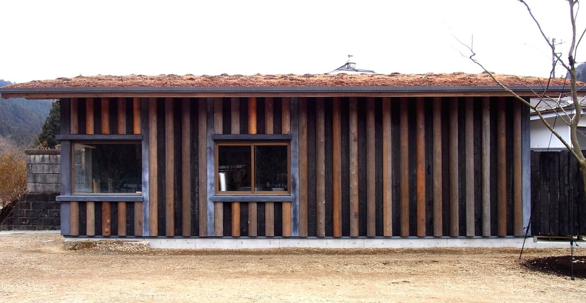 杉の丸太が縦にあしらわれた別棟の建物が、そば打ちの場所。そばを打つのも、そば店で修業したという地元の人です。