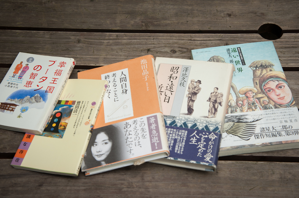 「愛や人生、幸せ」というようなテーマで富岡さんにピックアップしてもらったのがこちら。「幸福王国ブータンの智恵」(齋藤利也・小原美千代)、「じぶん・この不思議な存在」(鷲田清一)、「人間自身考えることに終わりなく」(池田晶子)、「昭和・遠い日・近いひと」(澤地久枝)、「遠い世界」(諸星大二郎)の5冊です。