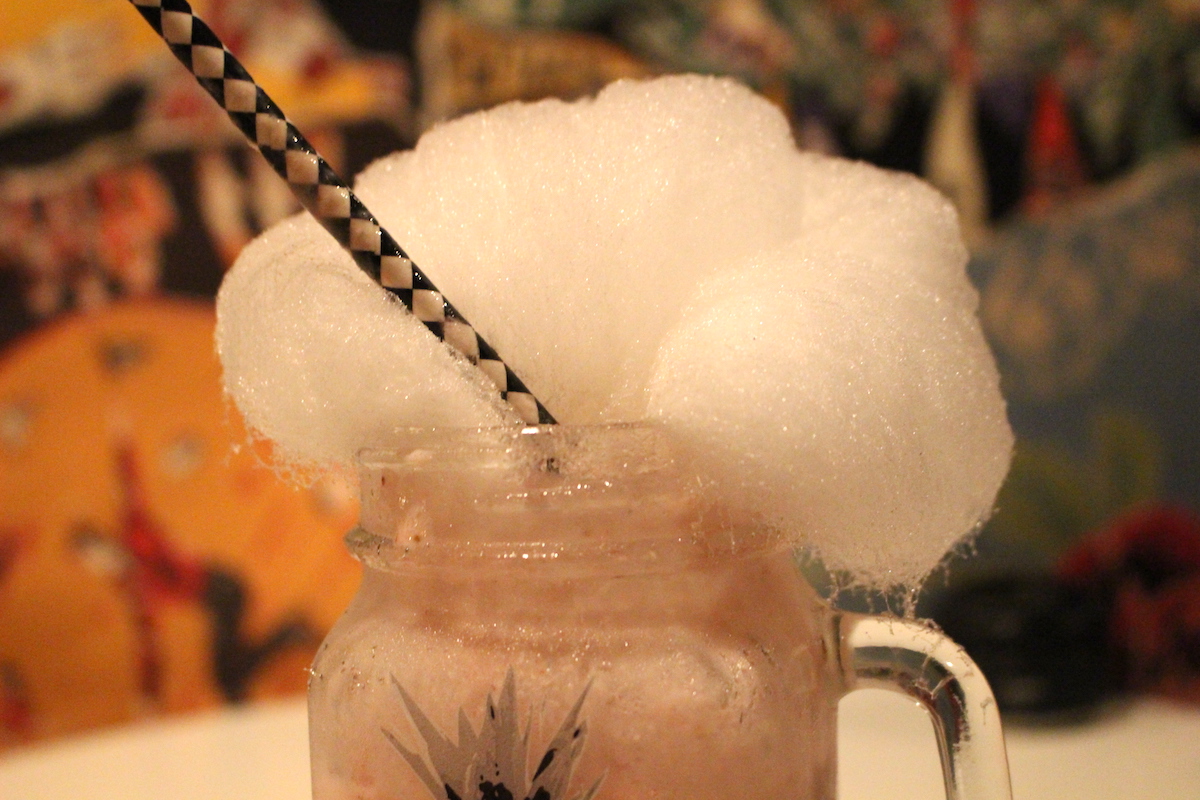 こんなに大きい綿あめでも、ドリンクに浸すとシュワシュワ溶けてすっぽりと収まっていきます。全部溶かして甘みをプラスするのもよし、半分だけ溶かして後は綿あめ自体を楽しむのもよし。お気に入りの飲み方を見つけてみてください!