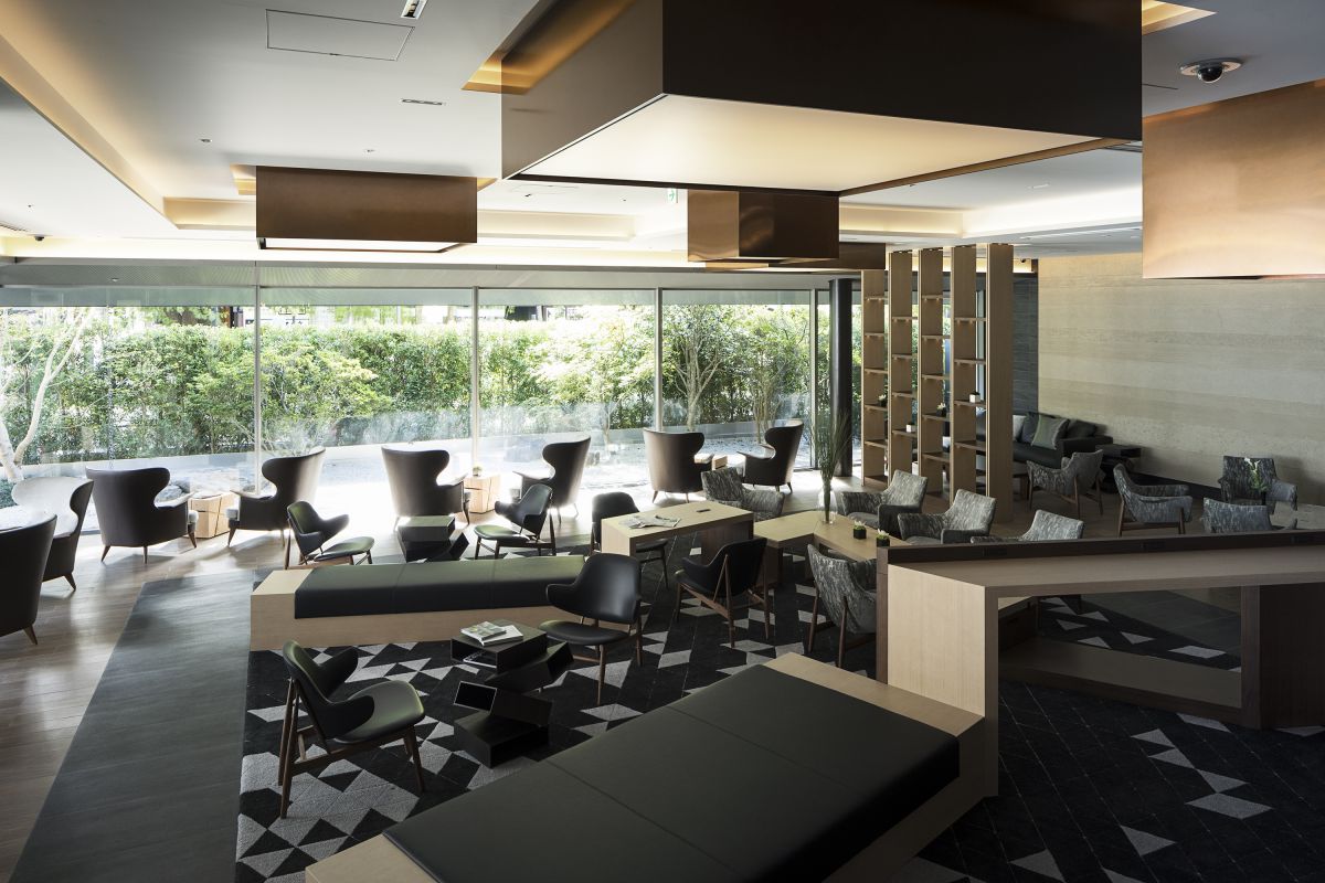 京町屋の格子をモチーフにした外観、二段庇の特徴的なエントランスに足を踏み入れれば、ロビー横には京都の奥座敷の気分を味わえるスペースがあり、スタイリッシュな中に、京情緒を感じられます。ホテル内各所にはアート作品が展示され、ゲストの感受性を刺激する仕掛けがいろいろ。期待が高まります!
