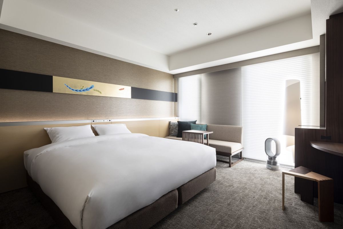 洗練されたデザイン、質の高いサービスやホスピタリティ、本物にこだわる空間づくりの精神を顕著に感じられるのが客室。「京感(共感)」と「木(気)づかい」をテーマにした客室は、温かみのある木材や柔らかな質感の和紙などの素材が使われており、ほっと安らげる空間になっています。