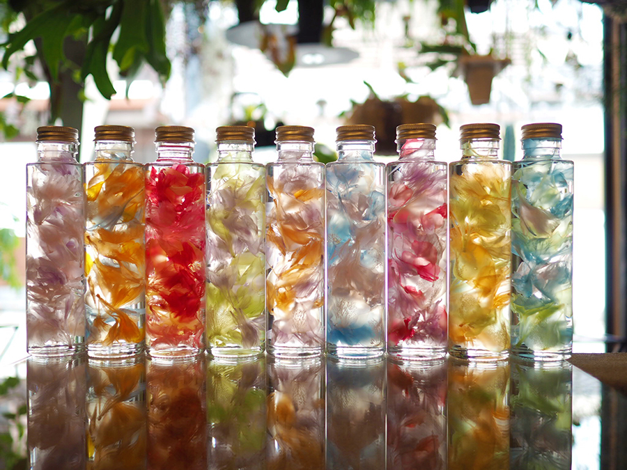 ドライフラワーやプリザーブドフラワーを使ったハーバリウムはよく見かけますが、こんなに色鮮やかなものは珍しいですよね。約1年はこのままの姿で観賞できるそうなので、家のインテリアやちょっとしたギフトにしてもいいですね。