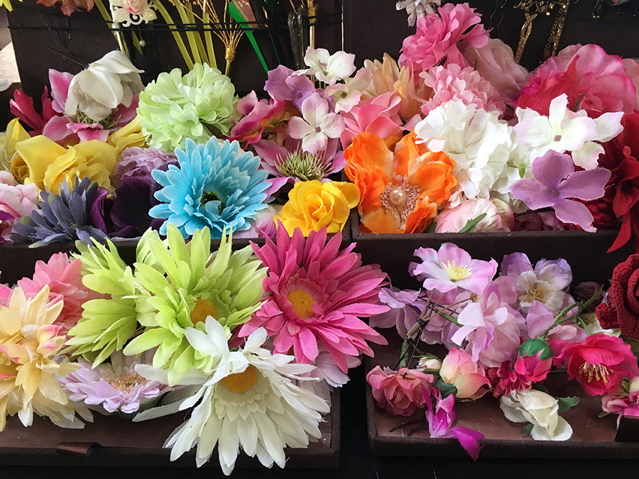 迷った時は、顔の雰囲気からも似合うきものをおすすめしてくれます。髪飾りも、きものに合わせられるように種類豊富。せっかくなので自分では選ばないような色や柄を身に着けるのもいいですね。