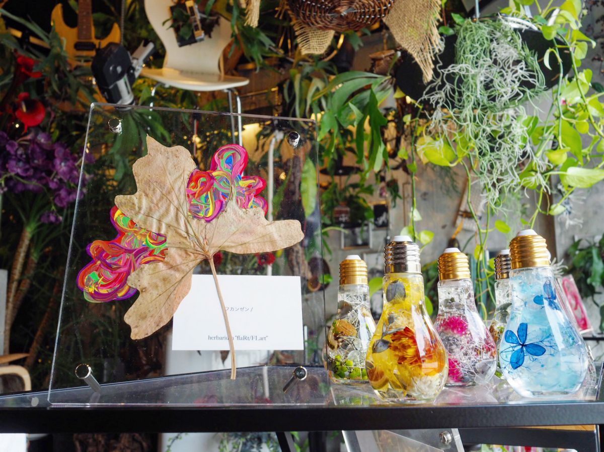 ガラス張りの建物にグリーンがいっぱいの姿が印象的な観葉植物専門店「KIYOU KAWASHIMA」。ここでは、本物の花を特別なオイルに入れフレッシュなままの色や形を長期間保てるように加工している新水中花 "Liquid Plantae”(2800円〜)が購入できます。