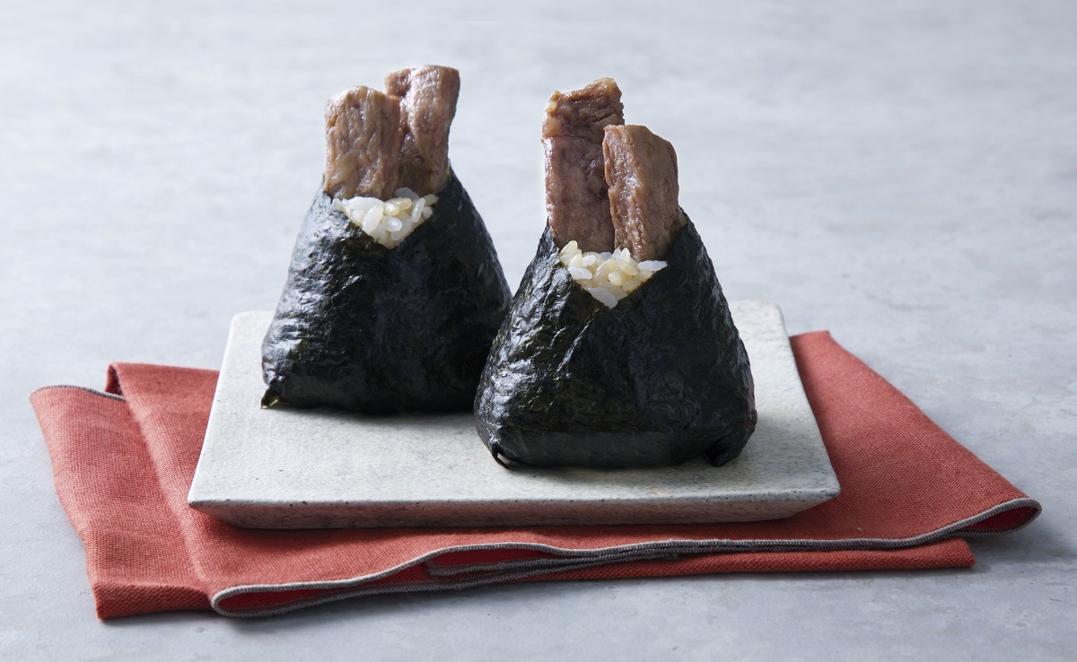 1日50個限定の「東北和牛いちぼステーキ」1個350円は、和牛の希少部位、“いちぼ”(お尻の部分)を使った贅沢なおむすび。【百千(エキュート品川 サウス)】※エキュート品川 サウス限定
