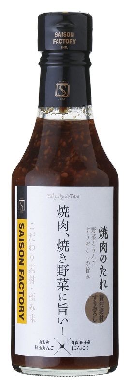 「焼き肉のたれ」1本 864円は、国産のたまねぎや青森県産にんにくなどの野菜と果実の旨みが凝縮された絶品の“たれ”。これでさらに焼肉がおいしくなります!【セゾンファクトリー(エキュート品川)】