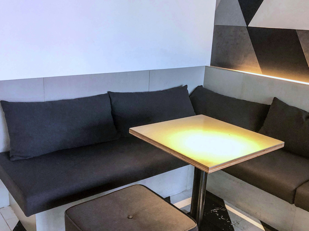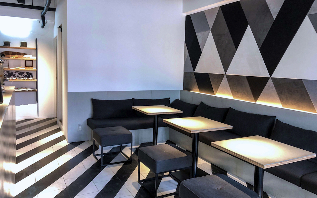 店内は、気分が上がること間違いなしのモードでスタイリッシュな空間!モノトーンを基調とし、壁や床はシンプルな幾何学模様で統一されています。これはドリンク片手にパシャリと撮って、SNSにアップしたくなりますね!