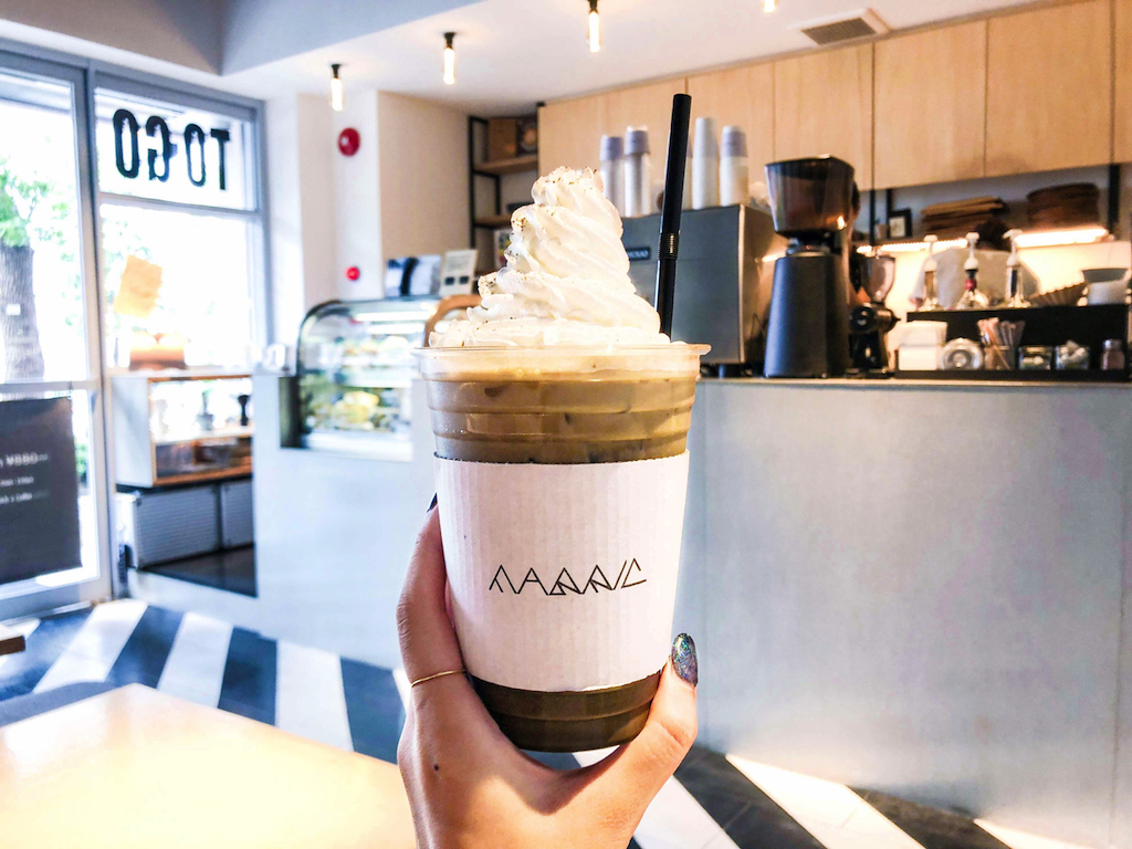 1番人気のドリンクは「ほうじ茶ラテ アイス」(550円)。スタイリッシュな店内を背景に、おしゃれなロゴやクリームがたっぷりとのった様子はSNSでも映えること間違いなし!