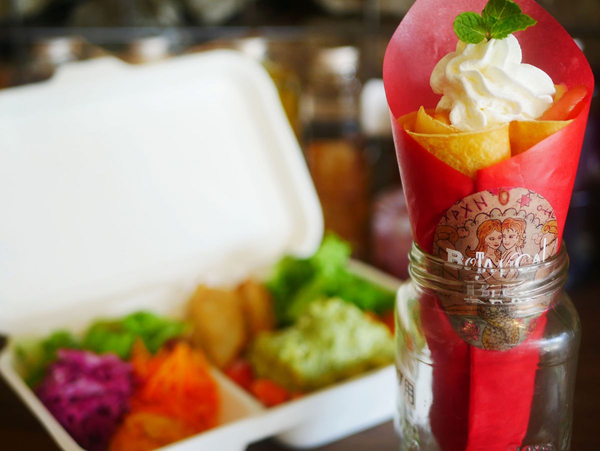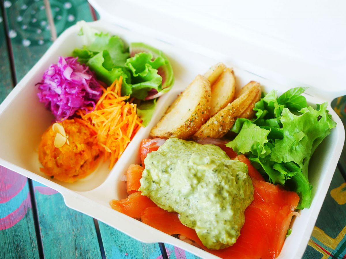 カウンターで注文するフードメニューは、そのままテイクアウトもできるランチボックススタイル!メキシカン、ハワイ、タイ、日本…様々な食文化をミックスした豊富なラインナップに目移りします。仲間と「せーの」で広げたら、まさに気分はピクニック!