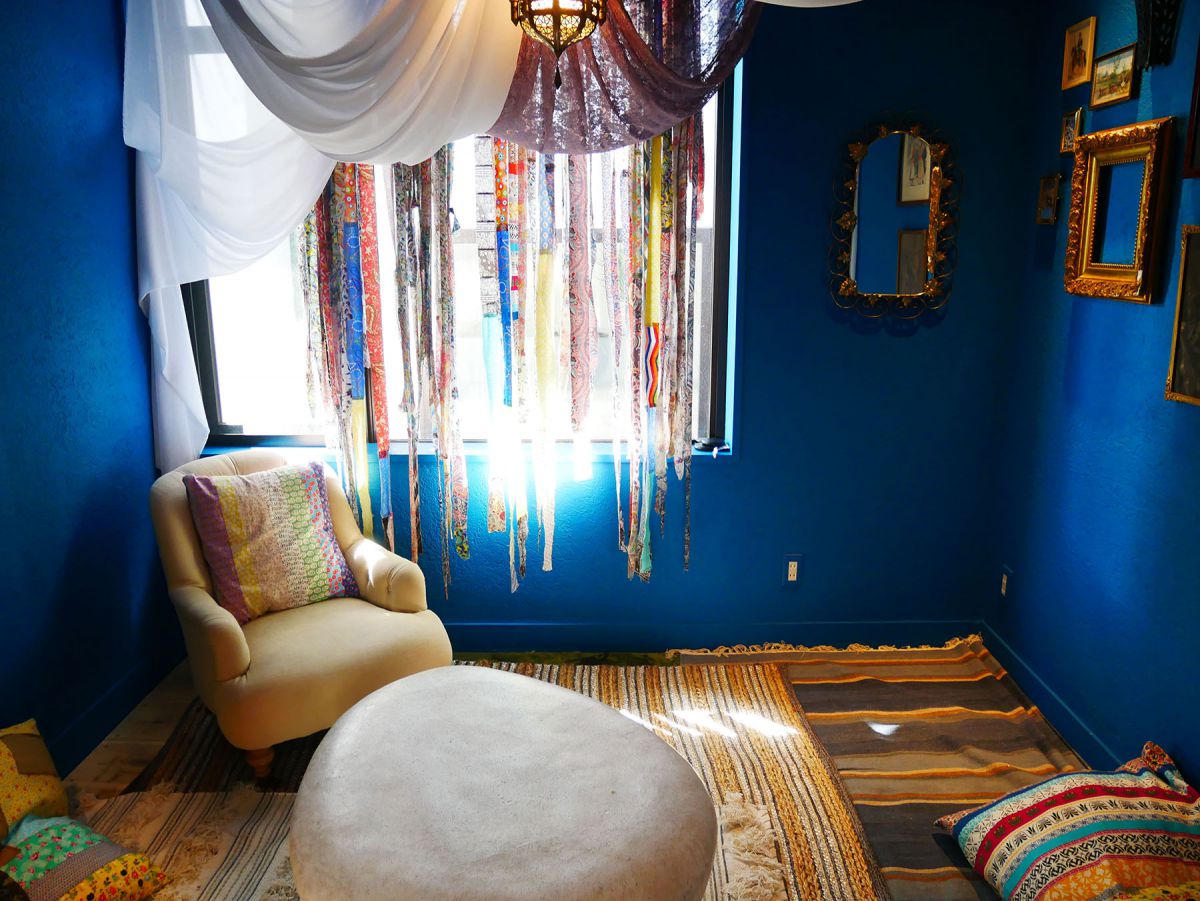 自然光が降り注ぐ開放的な空間には、タマネギ型のゲルや小上がり、ベッドなどを配置。世界各地の植物がなじむオシャレなインテリアを揃えた空間では、世界を旅しているような気分を味わえます。お店全体では約120名がくつろげるのだとか!